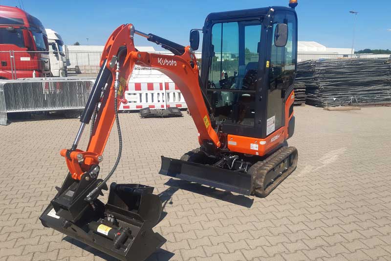 Unser Kubota-Mietbagger hat ein Einsatzgewicht von 1,6 Tonnen und ermöglicht so den unkomplizierten Transport per Anhänger zur Einsatzstelle. Bei Bedarf liefern wir Ihnen den Bagger gern direkt vor die Haustür und holen ihn auch wieder ab.